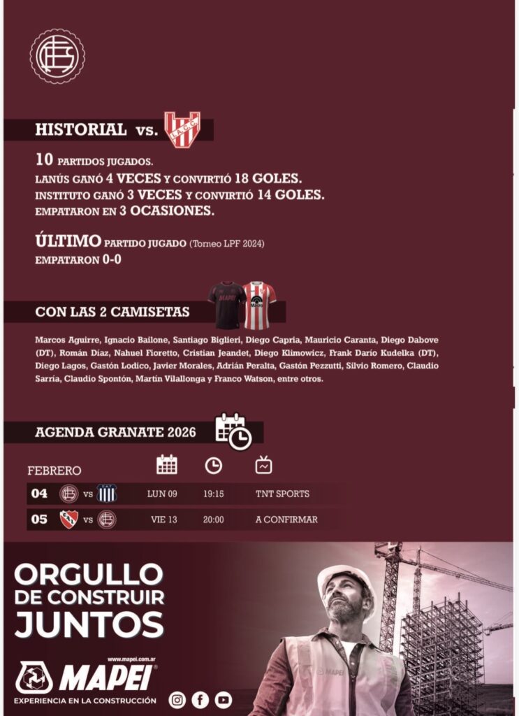 Inicio > Así es la revista que distribuyó Lanús a los medios en la previa del partido ante Instituto