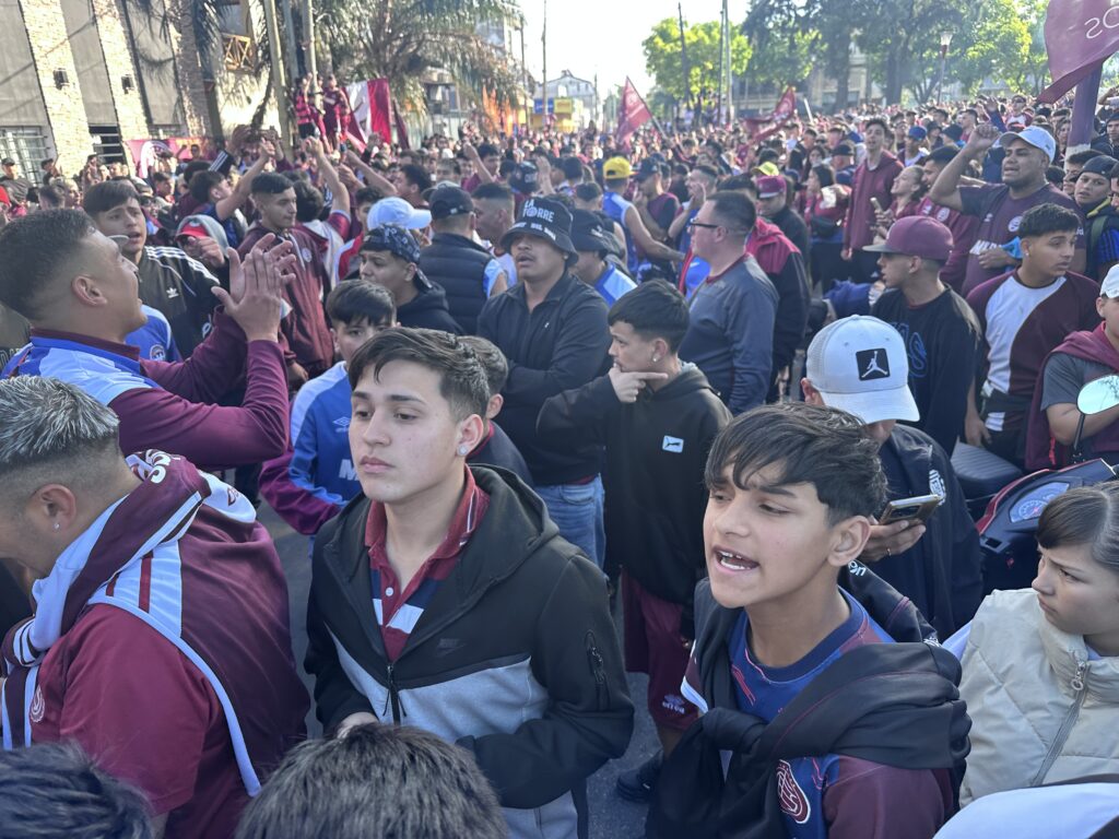 Así recibieron al micro de los jugadores los hinchas de Lanús