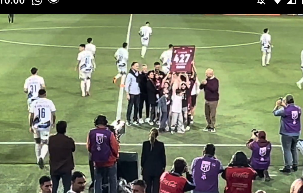 Se le entregó una camiseta de Lanús enmarcada al Laucha con el número 427, que son los partidos que, hasta ahora, jugó con la camiseta de Lanús.